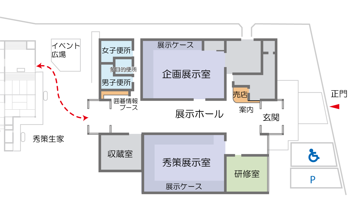 旧生家家相図を元に再現し、秀策の子ども時代を偲ぶことができます。木造平屋建て78平方メートル、板戸に土壁、和室4室。台所、土間などを設け、敷地内には梅林を復元しています。