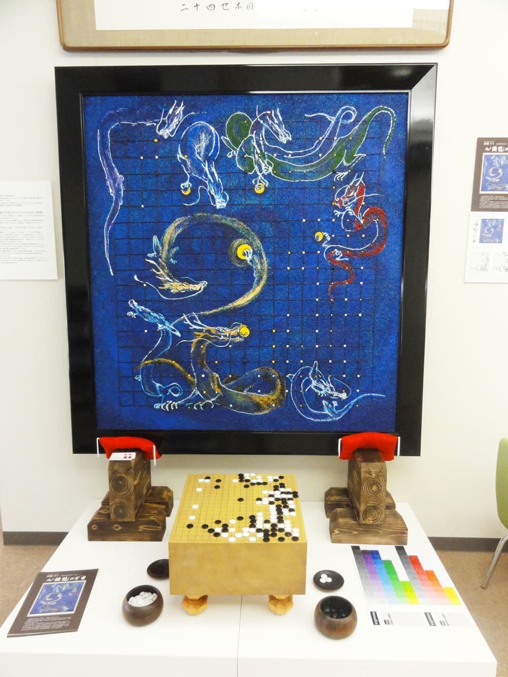 この絵は、アーティストの高橋りく氏が、囲碁インストラクターの成島奈津子氏と力を合わせて完成させたものです。