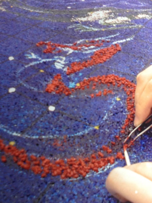 次回の作品を模索する最中、その言葉から稲妻に打たれたような感覚を受け取ったと言います。囲碁の棋譜をイメージした絵をマリス(砂絵)で描きたい。メールでそう柿島氏に相談したところ、本因坊秀策の『耳赤の一手』の棋譜を勧められたとのこと。
